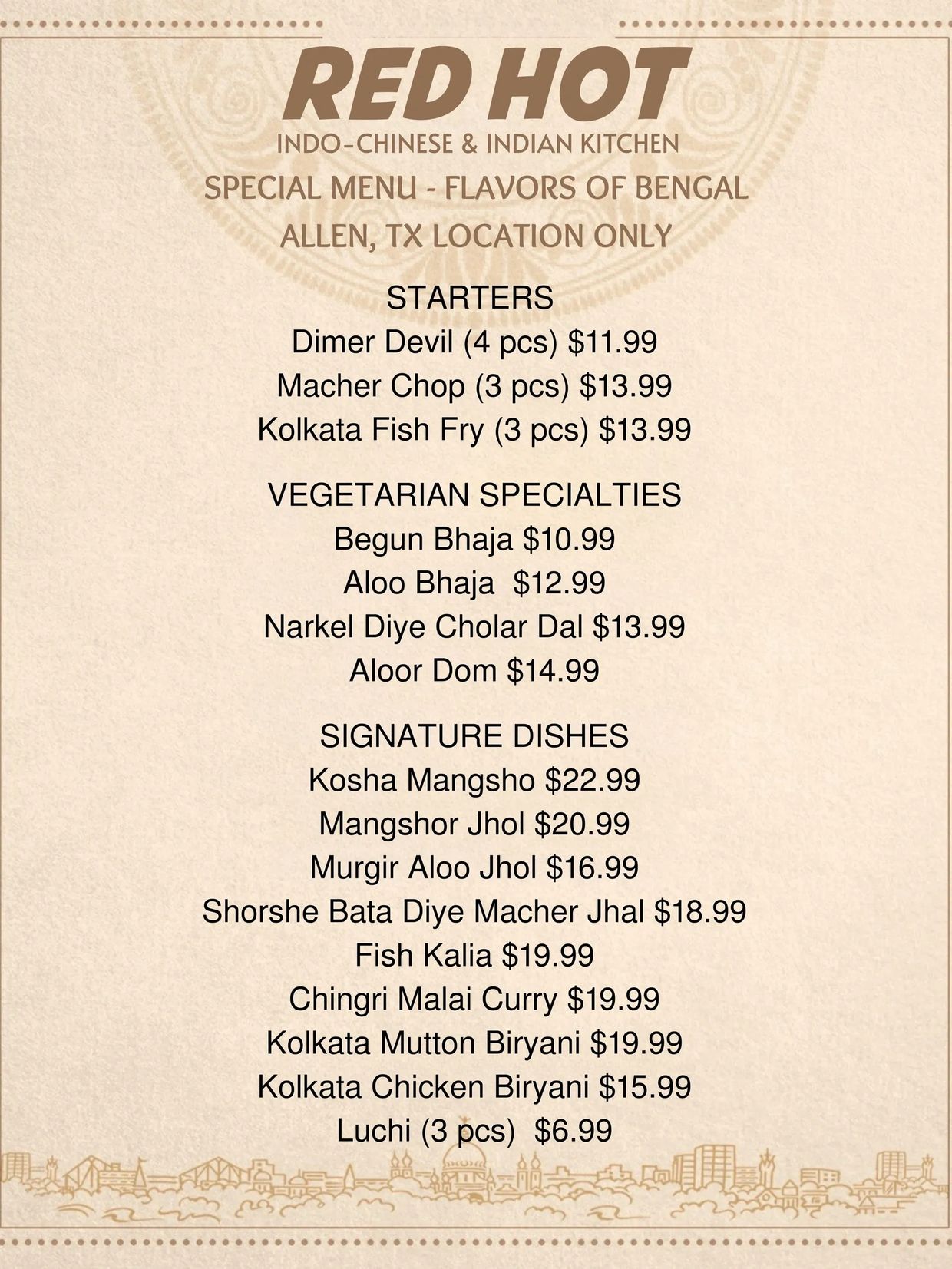 We’re excited to bring the rich, authentic tastes of Bengal from fragrant biryanis and flavorful fish and mutton curries to delectable starters ike Dimmer Devil, Fish Chop, Fish Fry— experience the true essence of Bengali cuisine without leaving town.